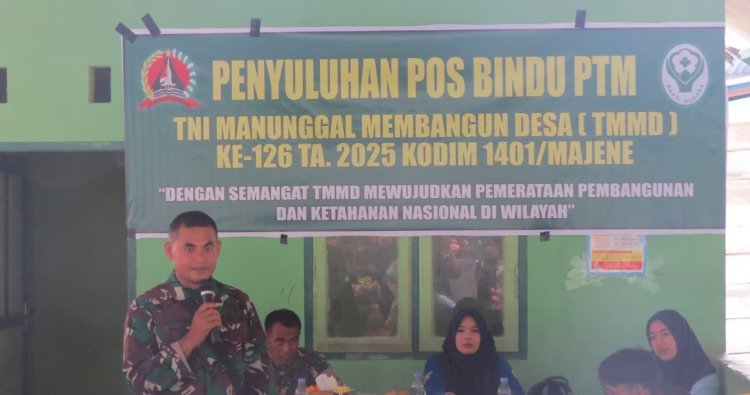 Majene – Satgas TNI Manunggal Membangun Desa (TMMD) ke-126 Kodim 1401/Majene menggelar kegiatan Penyuluhan Pos Pembinaan Terpadu Penyakit Tidak Menular (Posbindu PTM) di Desa Pamboborang, Kecamatan Banggae, Kabupaten Majene, Senin (20/10/2025).