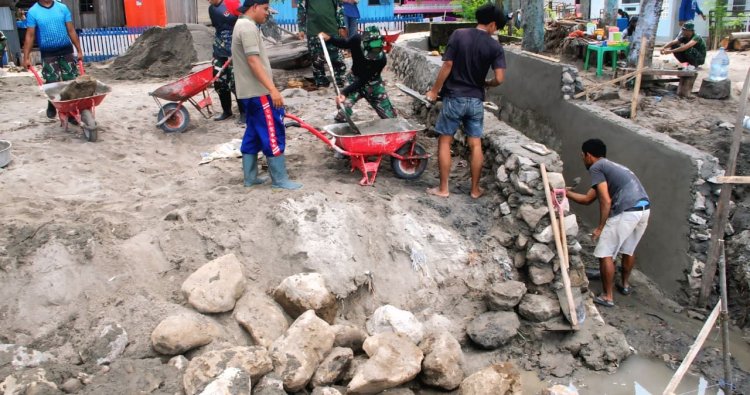 Pantauan di lokasi, sejumlah anggota TNI bersama warga bahu-membahu menggali tanah, mengangkut material, serta membangun dinding penahan menggunakan batu dan adukan semen. Meski di bawah terik matahari, semangat kebersamaan antara prajurit dan masyarakat tetap terpancar, memperlihatkan nilai nyata dari kemanunggalan TNI dan rakyat.
